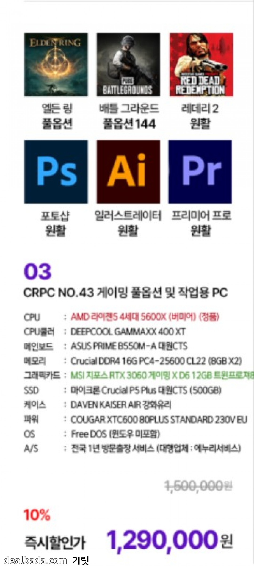 현재 그래픽카드가 많이 저렴해서 그런지 저렴한 완본체가 많이 나오고있네요