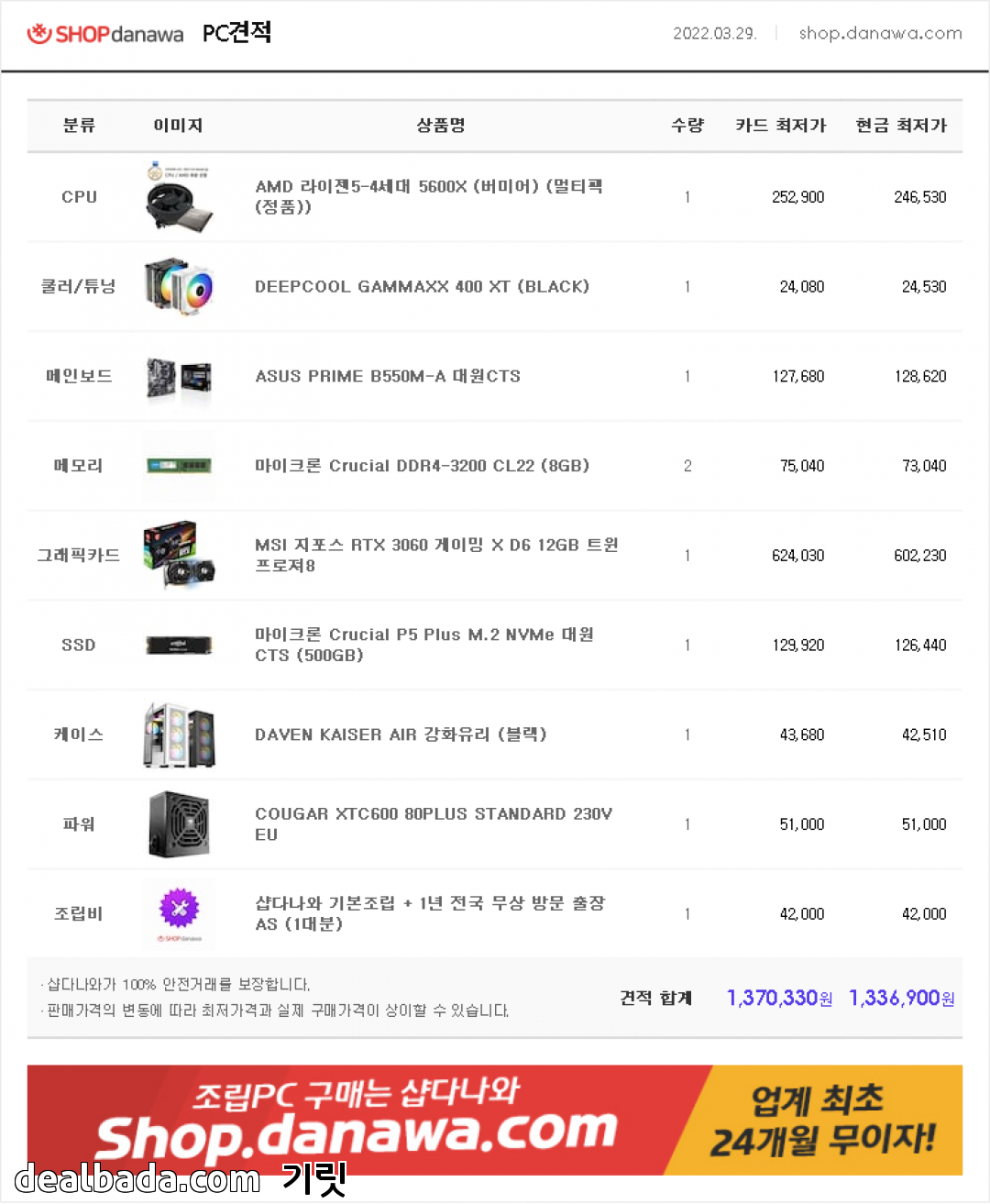 다나와견적보다 많이 저렴하고 영끌하면 더 저렴하게 구매도 가능하니 좋은거 같습니다.