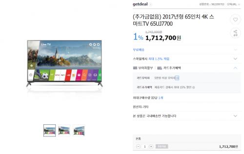 2017년형 65인치의 대화면의 4k UHD 65UJ7700 입니다.