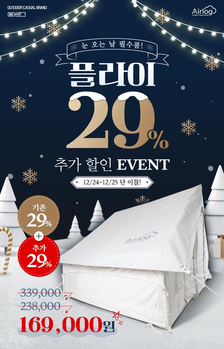크리스마스를 맞아 언제 어디서나 누구나 쉽게 캠핑을 즐길 수 있는 에어로그 에어텐트를 가장 저렴하게 구매하실 수 있도록 리퍼/전시 제품을 초특가로 판매합니다.