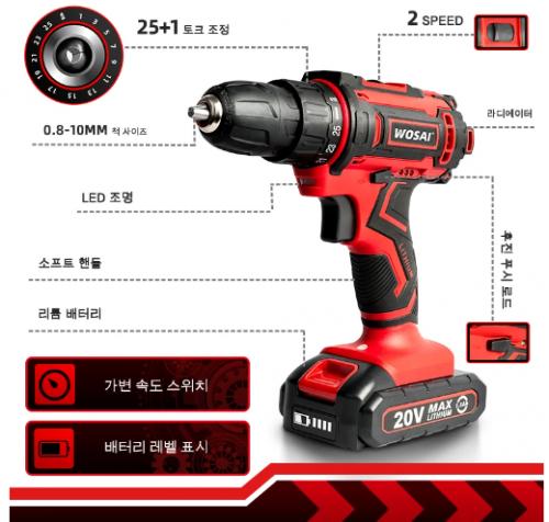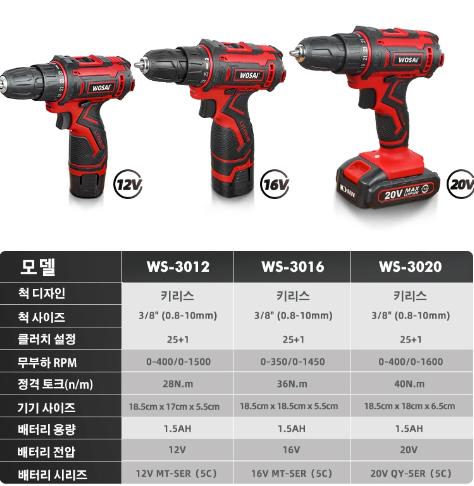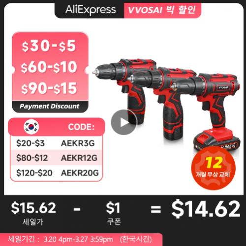 [알리익스프레스] WOSAI 12V 16V 20V 무선 전기 드릴 $14.62 > 상품홍보