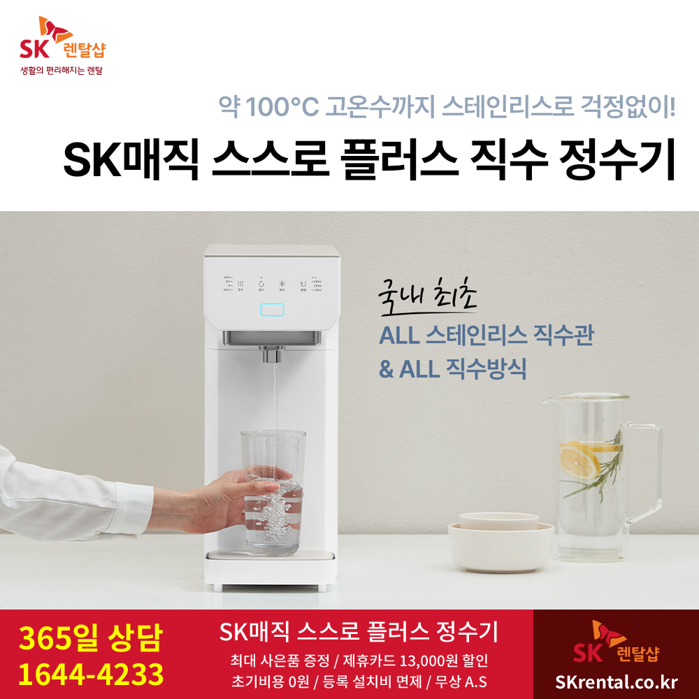 [SK렌탈샵 공식] 얼음정수기 / 비데 / 공기청정기 / 주방가전 / 매트리스 / 할인 & 사은품 / 365일 상담가능