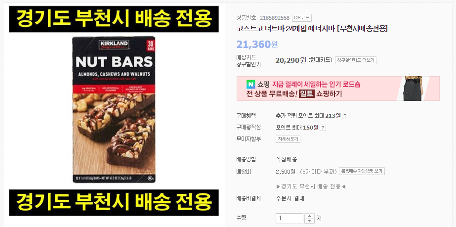 [스토어팜] 코스트코 커클랜드 너트바 24개입 20,360원/2,500원 > 상품홍보