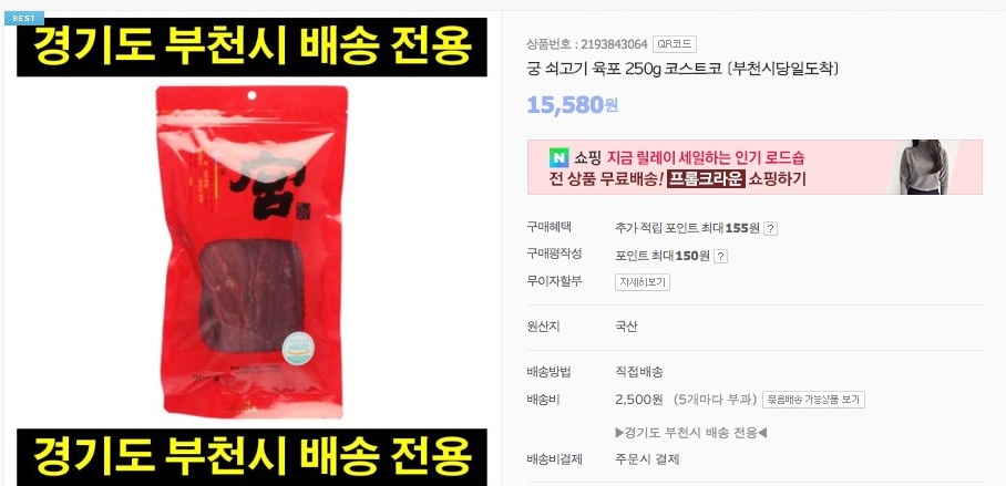 경기도 부천시만 배송이 가능하니 주문 시 참고 부탁드립니다.