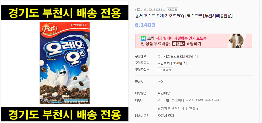 경기도 부천시만 배송이 가능하니 주문 시 참고 부탁드립니다.