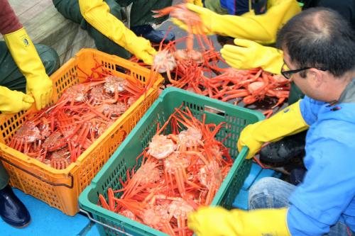 영덕대게는 영덕 근해에서 잡아서 속초로 배가 들어옵니다.