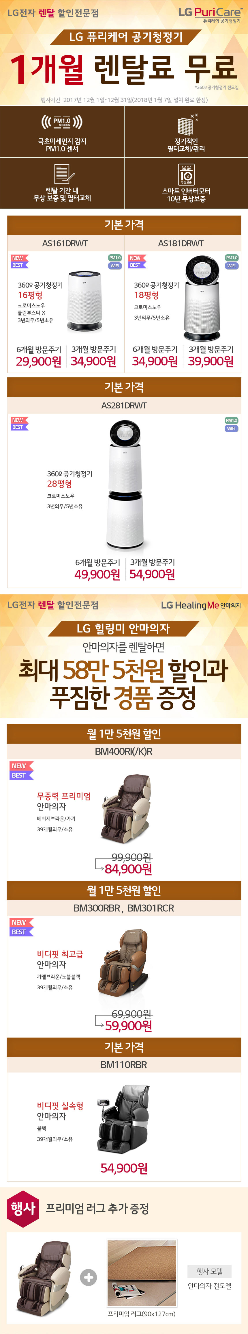 렌탈상품 : 정수기, 공기청정기, 안마의자, 생활가전, 스타일러, 건조기