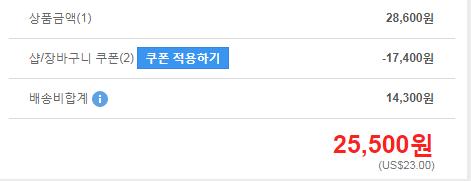 배송비 할인쿠폰을 받고 3달러 할인쿠폰을 받으면 총 25,500원에 구입이 가능합니다.
