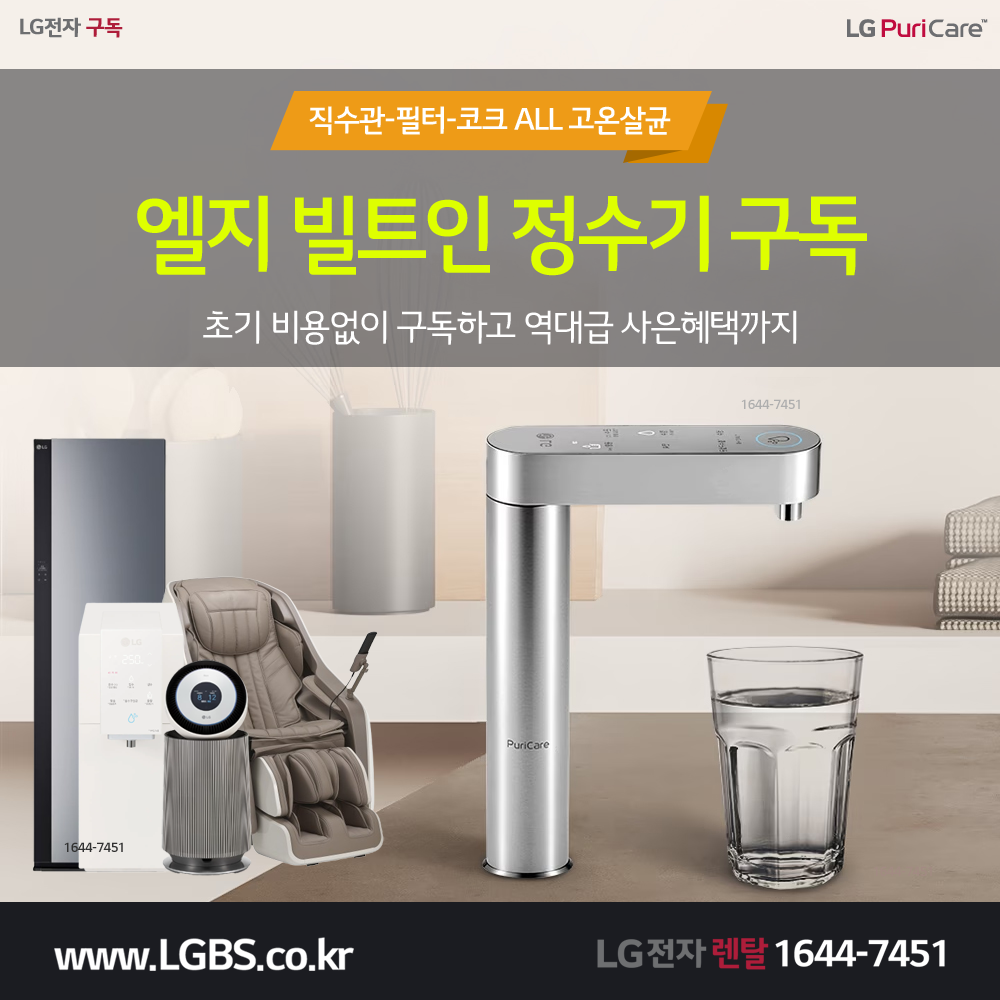 [LG렌탈] 정수기렌탈, 공기청정기, 세탁가전, 주방가전, 냉장고, TV (28,900원부터)