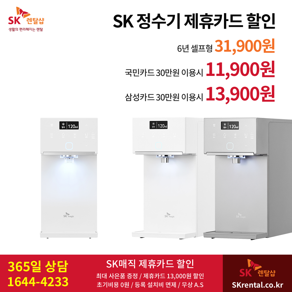 [SK렌탈] SK 정수기 렌탈, 반값할인, 타사보상, 비데, 공기청정기 (28,900원 냉온 6년 기준)