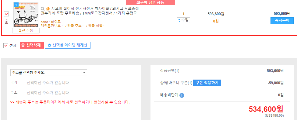 쿠폰은 아래 링크에서 받으셔서 장바구니에서 적용하시면 됩니다.