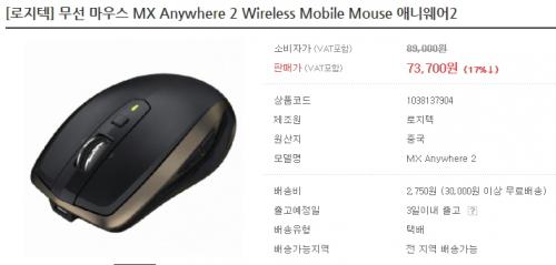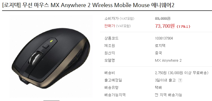[인터파크아이마켓] 로지텍 무선 마우스 MX Anywhere 2 Wireless Mobile Mouse 애니웨어2 (73,700원/무료배송) > 상품홍보