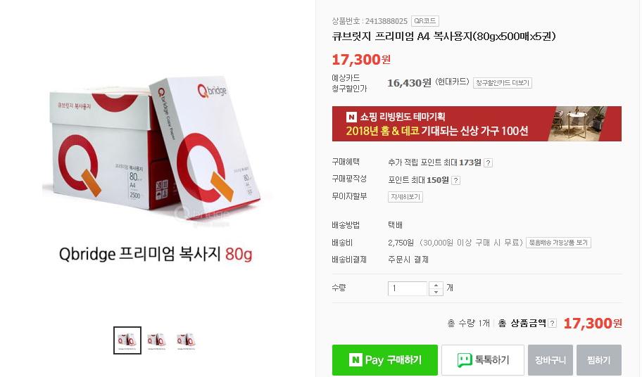 [스토어팜] 큐브릿지 프리미엄 A4 복사용지(80gx500매x5권) (17,300원/3만원이상 무료배송) > 상품홍보