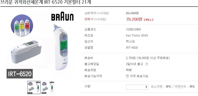 [인터파크아이마켓] 브라운 귀 체온계 IRT-6520 기본필터 21개 (79,200원/무료배송) > 상품홍보