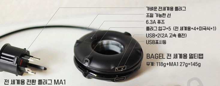 해외여행, 혹 국내에서 여행중 or 카페를 갈때; 멀티탭이 필요한 어느때나 필요한 베이글모양의 멀티탭