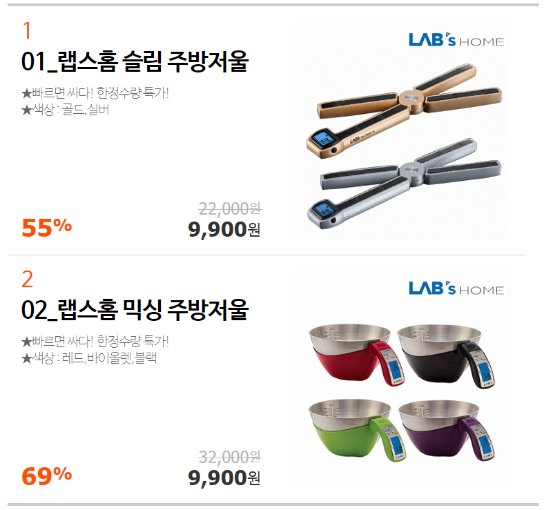 [쿠팡] 랩스홈 주방저울 (9,900/무배)