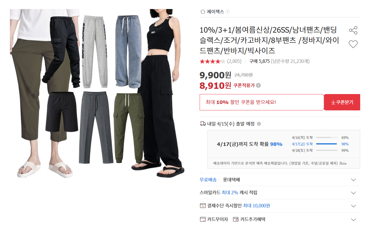 [옥션] 봄 신상 남녀공용 밴딩슬랙스/조거/카고 외 (8,910원/무료배송)