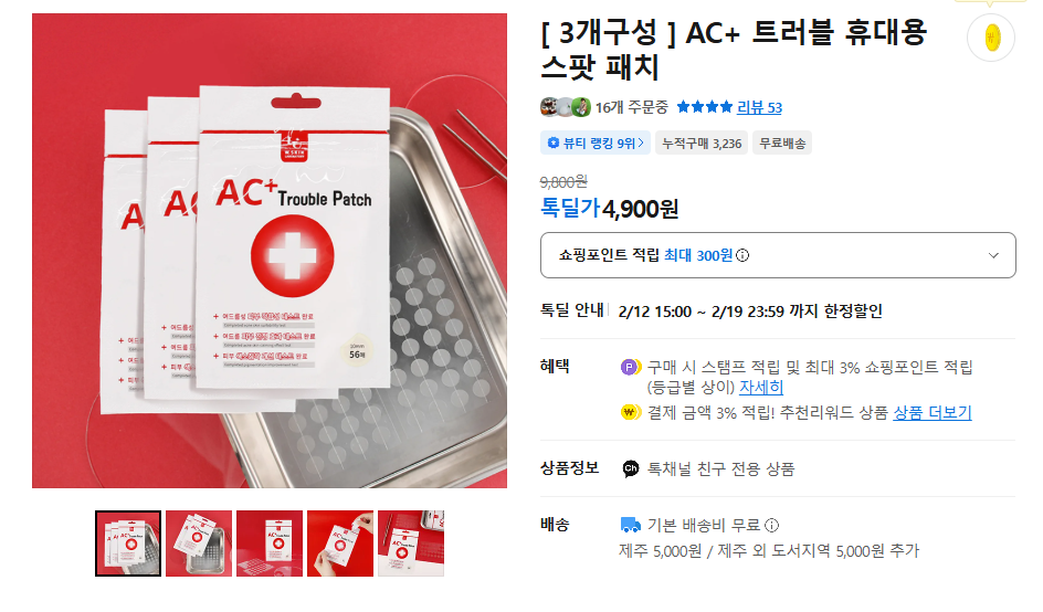 [카카오] 3개구성 AC+ 트러블 휴대용 스팟 패치