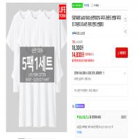 [지마켓] 5장1세트 남성 여성 순면100% 무지 라운드 반팔 14,830원/무배