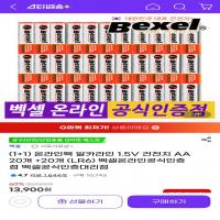[지마켓] 벡셀 온라인팩 알카라인 1.5V AA건전지 총 40개 (11,820원/무배)