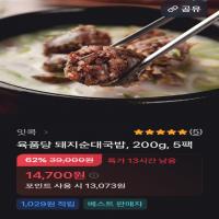 [토스] 육품당 돼지 순대국밥 200g 5팩 (14,700원/무료)