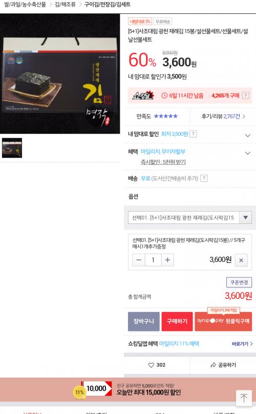 얼마전에 김 샀는데 또 사야되나.. 고민되네요ㅎㅎㅎ | ||