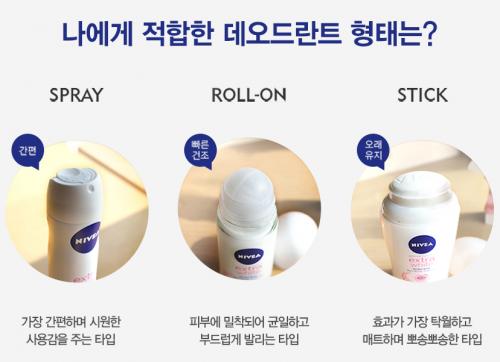 스프레이/롤온/스틱 방식에 대한 간략한 특징은 상품설명 부분에 나오는데요.