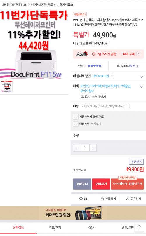 가격 좋네요~! 무한 잉크 되는지 궁금하네요 | ||