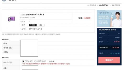 불가리 블루100ml를 사려고 하니 기본 상품가격 40,900원 - 쿠폰 10%(4090원) - 적립금 5%(1841원) 해서 실제 가격은