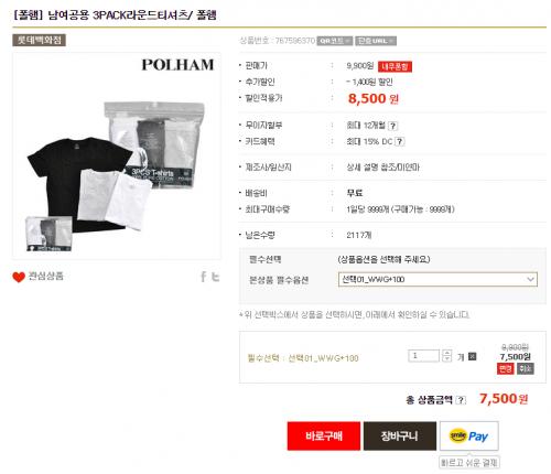 화이트 3 장은 사이즈가 없네요 .. 아쉽네요 | ||