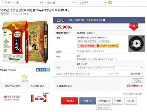 매번 시켜 먹는 쌀인데 여름이라 10kg 주문하려는데 저렴해서 올려보아요~