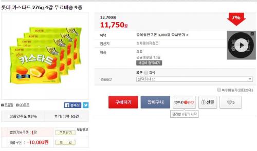 안되시면 네이버에서 롯데 카스타드(276g*4갑) 를 검색하면 11번가 11,750원 뜹니다.