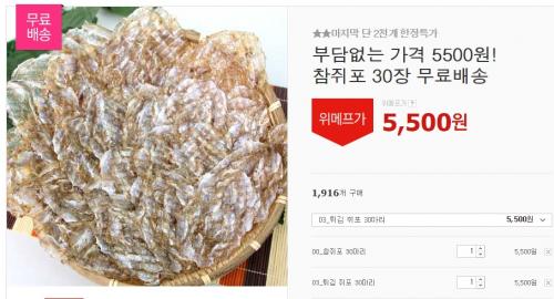 쥐포, 튀김쥐포가 싸게 올라왔네요.