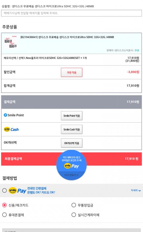 쿠폰게시판에 제가 올린 쿠폰 사용하시면 17,910원 나옵니다