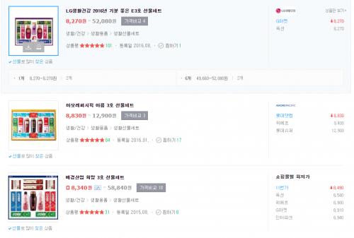 보통 애경, LG생건, 아모레 3호 선물세트는 최저가가 7,900원 쯤에 배송비가 6개 마다 2,500원 씩 붙습니다.