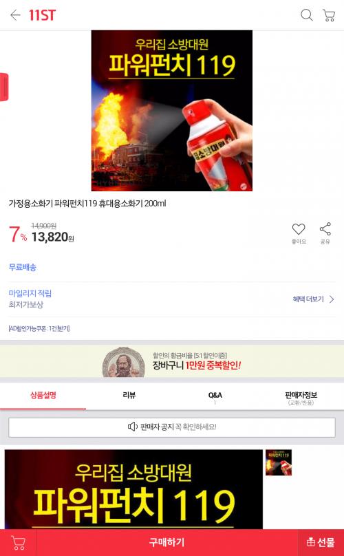 소화기 1개정도는 구비하로있는게 좋죠 | ||