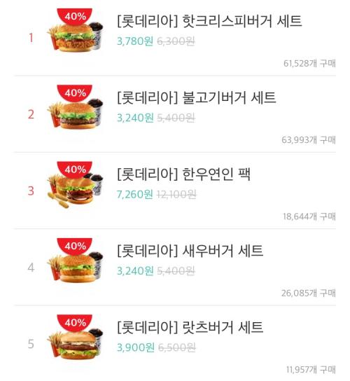 티스토어에서 롯데리아버거세트 40%세일중이네요