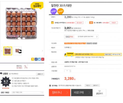 오늘 계란사야하는데 가격좋네요. | ||