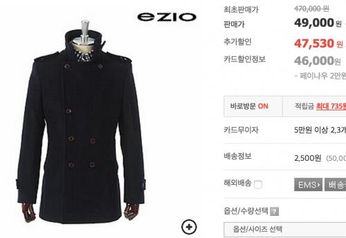 [하프클럽] [이지오] 견장포인트 모직 혼방 더블 코트 (49,000원/2,500원) > 국내핫딜