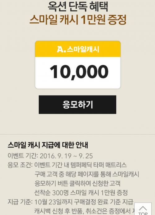 구입 후 두번째 링크에서 스마일캐시 만원도 응모하면 실체감가는 제가 구입한 퀸사이즈 기준으로 50만원(보다 조금 더 내려가더군요 (선착순 300명)