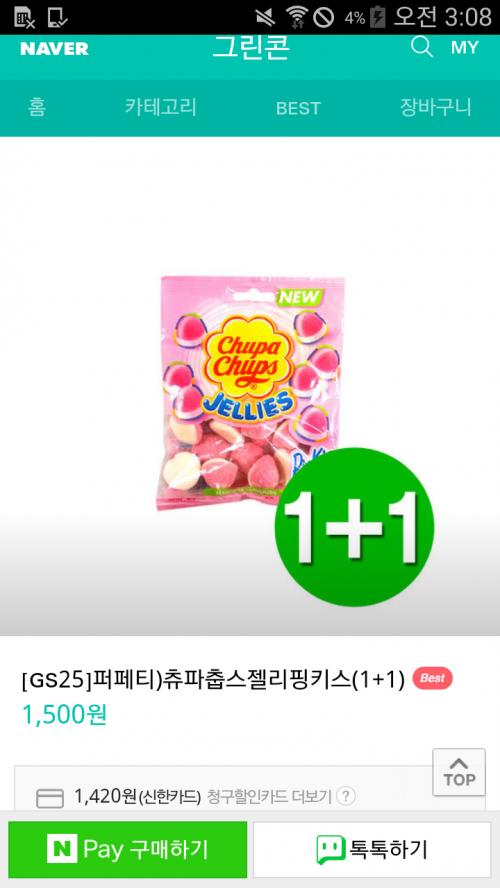 참고로 1+1에 1500원 이지만 신한카드로 구매시