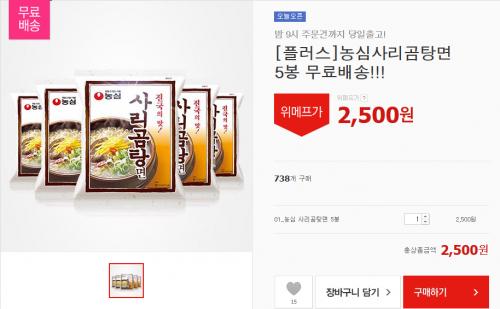 사리곰탕면 5봉 무료배송이네요..ㄷㄷ
