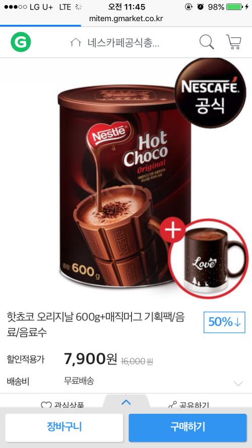 머그컵사면 핫초코주네요 사고싶다 | ||