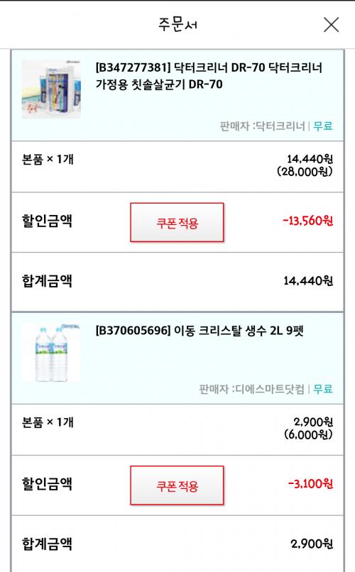 실구매가는 17,340원이며 DR-70과 크리스탈생수 9병을 포함한 가격입니다.