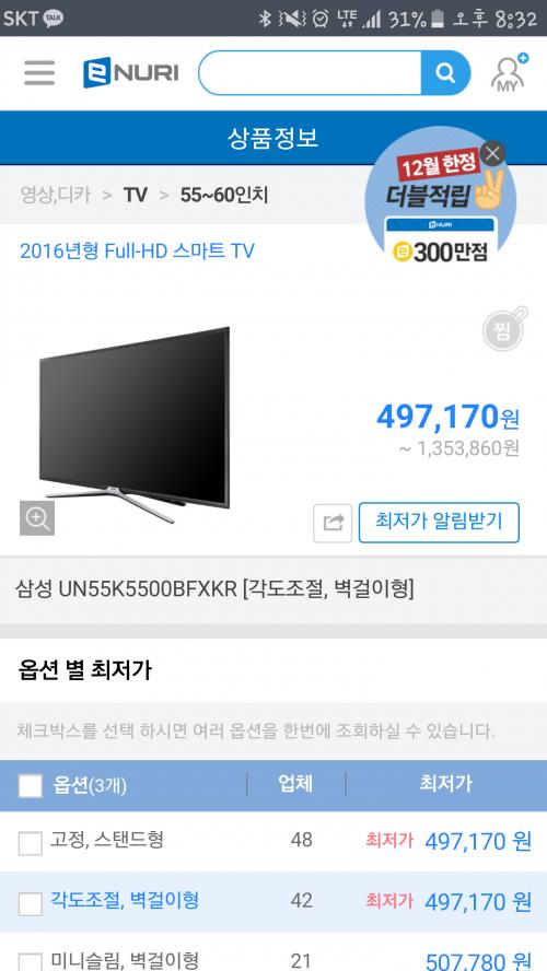 인치당 만원도 안되는 가격이라니! 이미 55인치인데도 사고싶은 가격이네요 ㄷㄷㄷ | ||