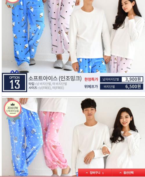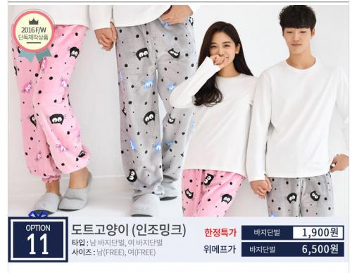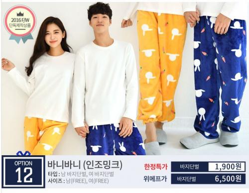 남자는 밑단 펑퍼짐, 여자는 밑단 고무밴딩 처리되어있습니다