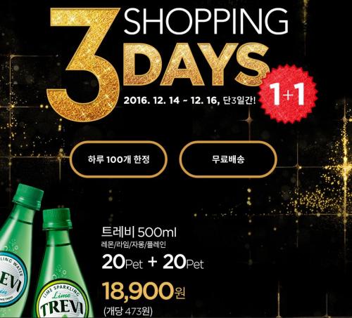 트레비 500ML 40페트 가격 좋아요. 16일까지 100명 선착순 1+1 무료배송입니다.