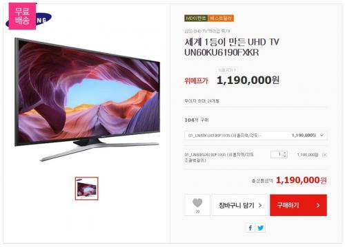 60인치 UHD스마트 TV 위메프에서 119만원에 판매합니다.