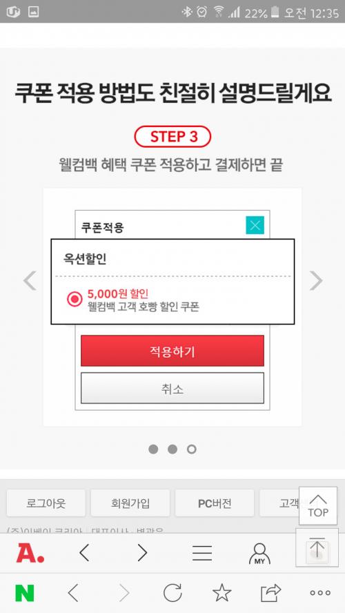 아쉽네요ㅠㅠ쿠폰 받으셨으면 또 다른거 떳을때 그때 사용하세요~^^ | ||