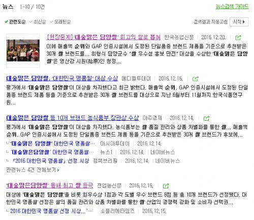 2016년 대한민국 명품쌀 대상을 받았다고 해서 관련 기사도 참아보았습니다.